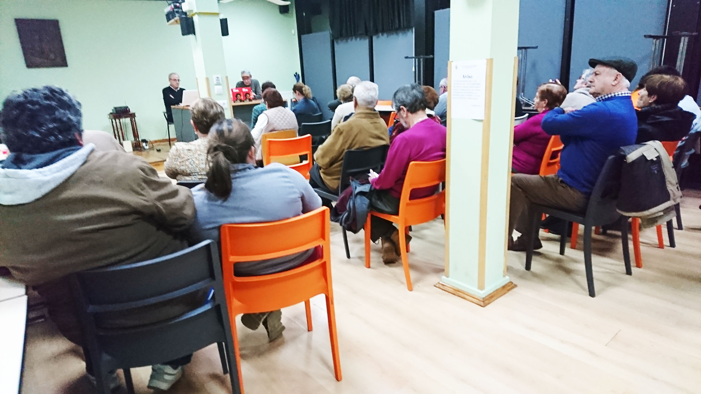 La presentación fue a las cinco de la tarde en el local de reuniones de la parroquia de Santa Bárbara de Llaranes. Un lugar cálido, no sólo por la decoración con la que estaba revestido, sino y sobre todo por la agradable gente que allí llegó para participar en la asamblea parroquial donde se presentaba el libro GASPAR GARCÍA LAVIANA visto desde Asturias. Fue una alegría encontrarme allí con rostros conocidos del Foro GGL de la parroquia de Santa Teresa de El Pozón, con la que ahora la de Llaranes forma una Unidad Pastoral Parroquial.