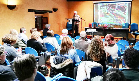 La presentación fue a las cinco de la tarde en el local de reuniones de la parroquia de Santa Bárbara de Llaranes. Un lugar cálido, no sólo por la decoración con la que estaba revestido, sino y sobre todo por la agradable gente que allí llegó para participar en la asamblea parroquial donde se presentaba el libro GASPAR GARCÍA LAVIANA visto desde Asturias. Fue una alegría encontrarme allí con rostros conocidos del Foro GGL de la parroquia de Santa Teresa de El Pozón, con la que ahora la de Llaranes forma una Unidad Pastoral Parroquial.
