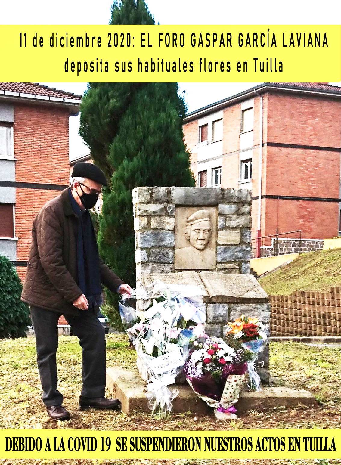 Con la pandemia del COVID-19 nos ha venido también un cierto bajón en lo que se refiere al recuerdo de GASPAR GARCÍA LAVIANA. El año pasado no se ha podido llevar a cabo el encuentro tan importante que cada año venimos haciendo en Tuilla, que siempre tuvo una doble vertiente, igual que la que tuvo la vida del mismo Gaspar: nos juntamos en la iglesia parroquial y a continuación seguía el encuentro ante el monumento que hay muy cerca de ella para hacer en ambos lugares memoria de nuestro querido personaje.